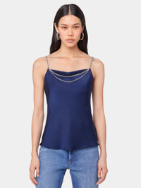 - Color: Navy Blue - Cowl Neck - Sleeveless - Signature silver chain detail at neckline DETAILS - Composition : 100% Polyester - Made in Tunisia - This style is true-to-size - We recommend your usual size.