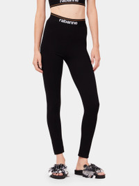 Colours : black, white, gold Design : Pants Enhanced by the Rabanne logo - Colours : black, white, gold - Design : Pants - Enhanced by the Rabanne logo DETAILS Composition: 84% viscose, 11% Polyamide, 5% Spandex Model's height: 178 cm / 5ft 10in Model wears a size S