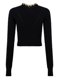 chain-link ribbed knitted top Highlights - Black - Wool-cashmere blend - Knitted construction - Ribbed knit - Chain-link neck strap - Cropped - Long sleeves Made in France Composition Wool 70%, Cashmere 30% Washing instructions Read Manufacturer Guidelines