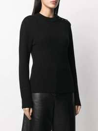 crew-neck knit jumper black merino wool knitted construction crew neck long sleeves Imported Composition Merino 100%, Virgin Wool 100% SIZE & FIT Model measurements Height 5 ft 10 in(1.78 m) Bust/Chest 33.07 in(84 cm) Hips 35.82 in(91 cm) Waist 25.98 in(66 cm) FittingInformation This piece fits true to size. We recommend you get your regular size Cut for a slim fit Made with a mid-weight fabric Washing instructions Dry Clean Only
