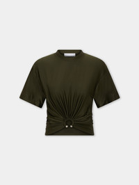 Short sleeves cropped t-shirt in jersey with piercing detail. - Color : Khaki - Crew neck - Short sleeves - Cropped length - Silver piercing detail on the front - Composition : 90% Viscose, 10% Elastane - Made in Portugal Size & Fit - Model's height: 180 cm / 5ft 11in - Model wears a size FR 36 / UK 8 / US 4 - This style is true-to-size - We recommend your usual size.