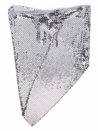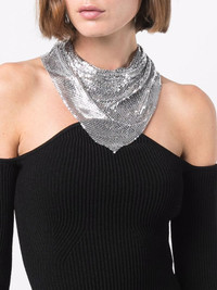 draped mesh necklace Bandanas made decadent. This silver-tone brass draped mesh necklace from Paco Rabanne takes the classic neckerchief to new heights. Just don't look down. Highlights - Silver-tone - Brass - Draped design - Mesh detailing - Concealed rear fastening Made in France SIZE & FIT Model measurements Height 5 ft 10 in(1.78 m) Bust/Chest 33.46 in(85 cm) Hips 36.22 in(92 cm) Waist 23.22 in(59 cm) Measurement Minimum Length 16.14 in(41 cm) PENDANT WIDTH 16.92 in(43 cm) TOTAL LENGTH 11.22 in(28.5 cm)