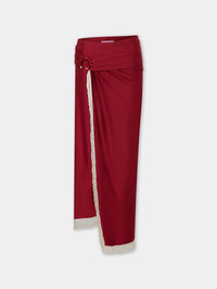 - Color: Red - Ankle-length - Piercing at the waist and silver fringe details DETAILS - Composition: 90% Viscose, 10% Elastane - Made in Portugal - Model's height: 180 cm / 5ft 11in - Model wears a size FR 36 / UK 8 / US 4 - This style is true-to-size - We recommend your usual size.