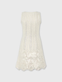 - Colors : Ecru / Silver - Crew neck - Sleeveless - Short-length - Silver foil detail and crochet effect at the bottom of the dress - Eight logo at the back DETAILS - Composition : 80% Cotton, 20% Polyamide - Made in Italy - Model's height: 180 cm / 5ft 11in - Model wears a size FR 36 / UK 8 / US 4 - This style is true-to-size - We recommend your usual size.