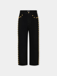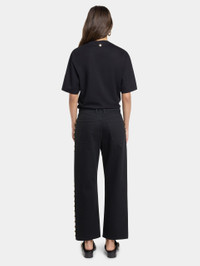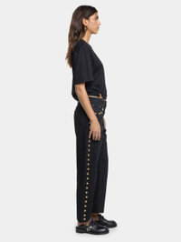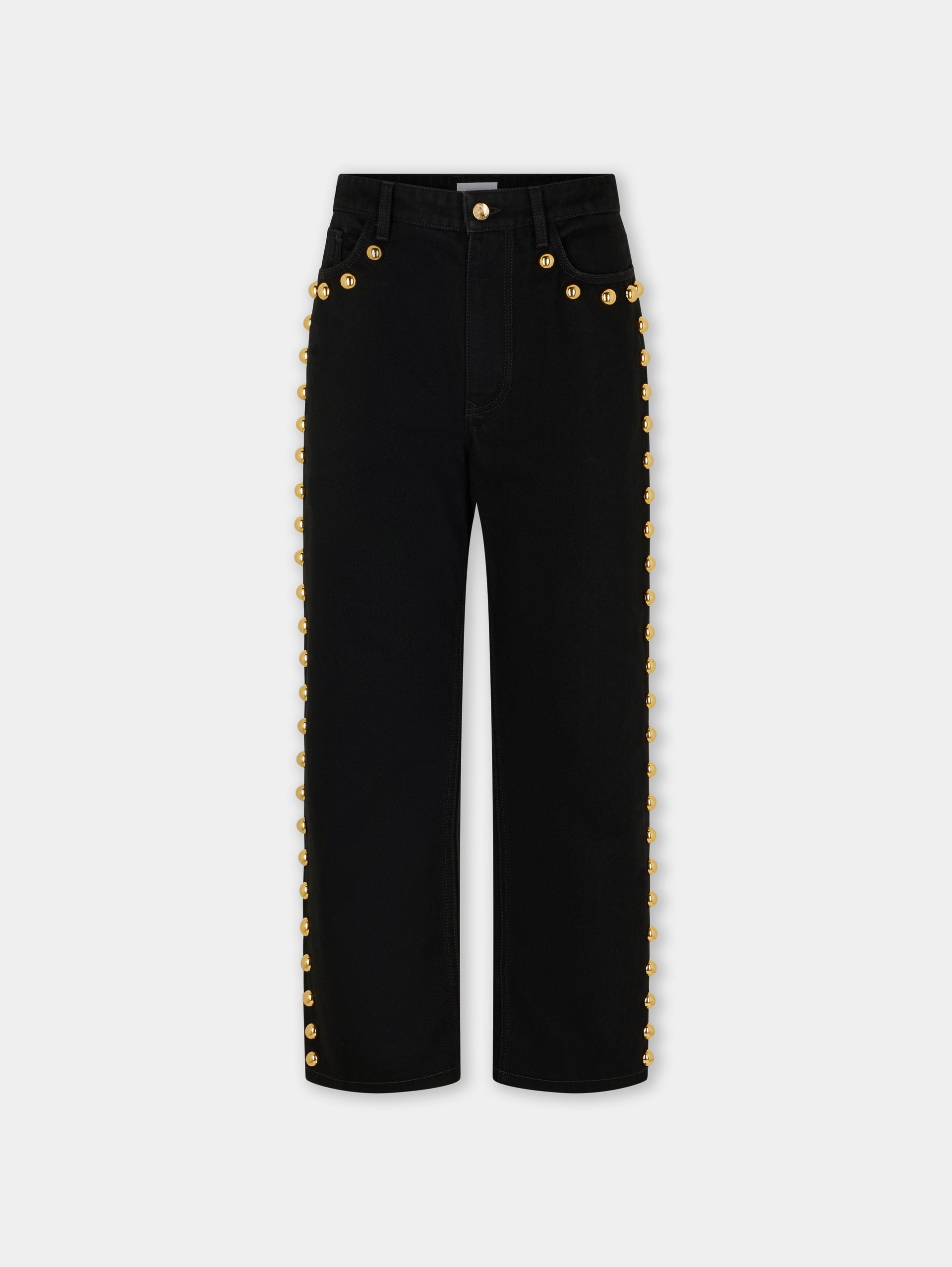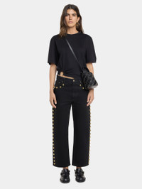 - Color: Black - Cropped length - Embellished with large gold studs - Gold signature rivets DETAILS - Composition: 100% Cotton - Made in Italy - Model's height: 177 cm / 5ft 9,5in - Model wears a size FR 26 / UK 8 / US 4 - This style is true-to-size - We recommend your usual size