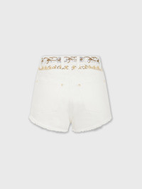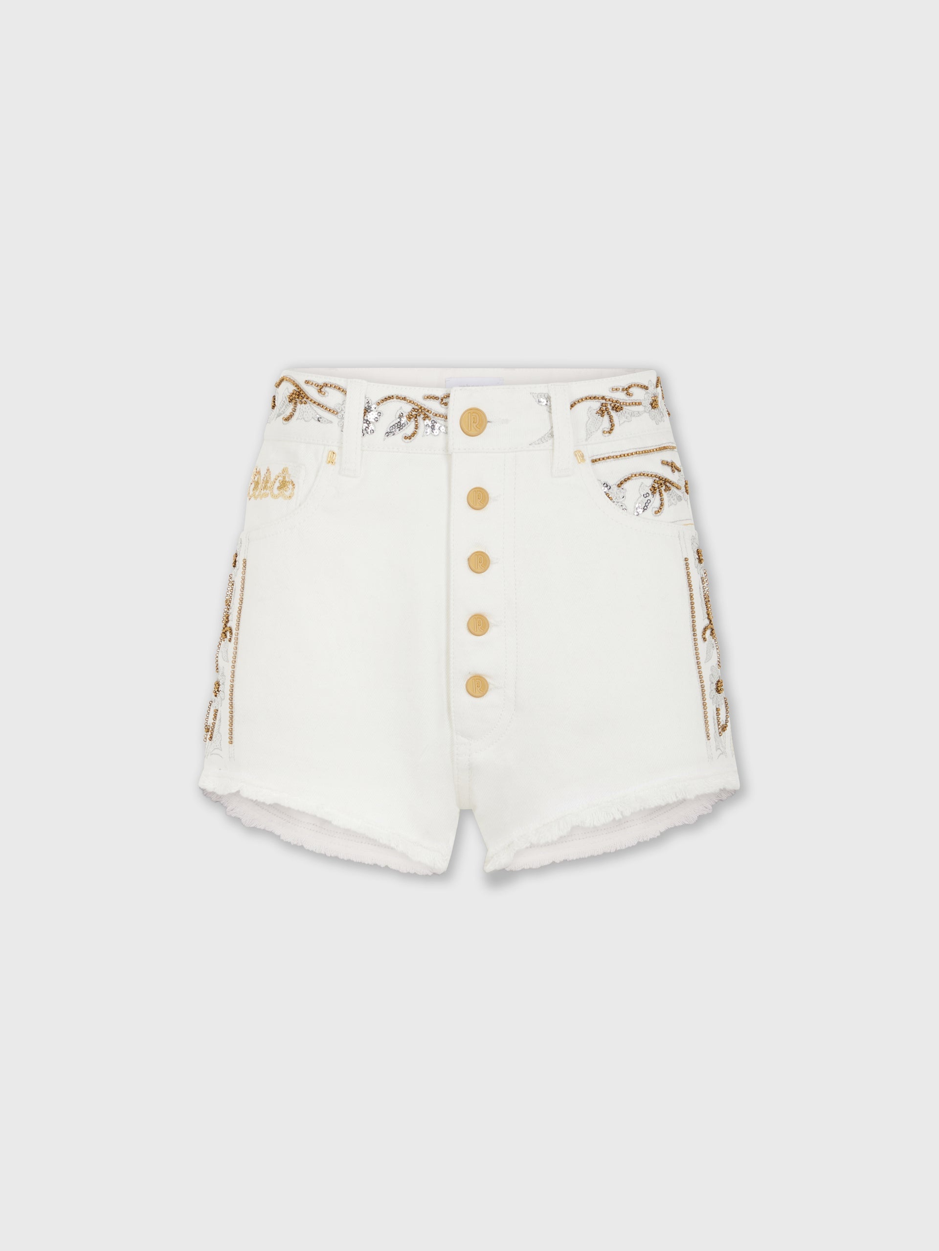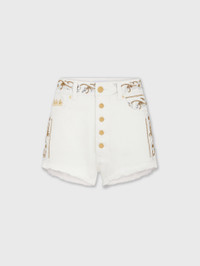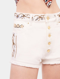 EMBROIDERED OFF WHITE DENIM SHORTS