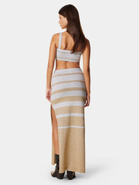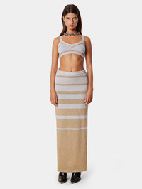 '- Long lurex skirt - Gold and silver stripes - Fitted cut - Side slit DETAILS - Composition: 35% metallic thread, 34% polyamide, 31% cotton