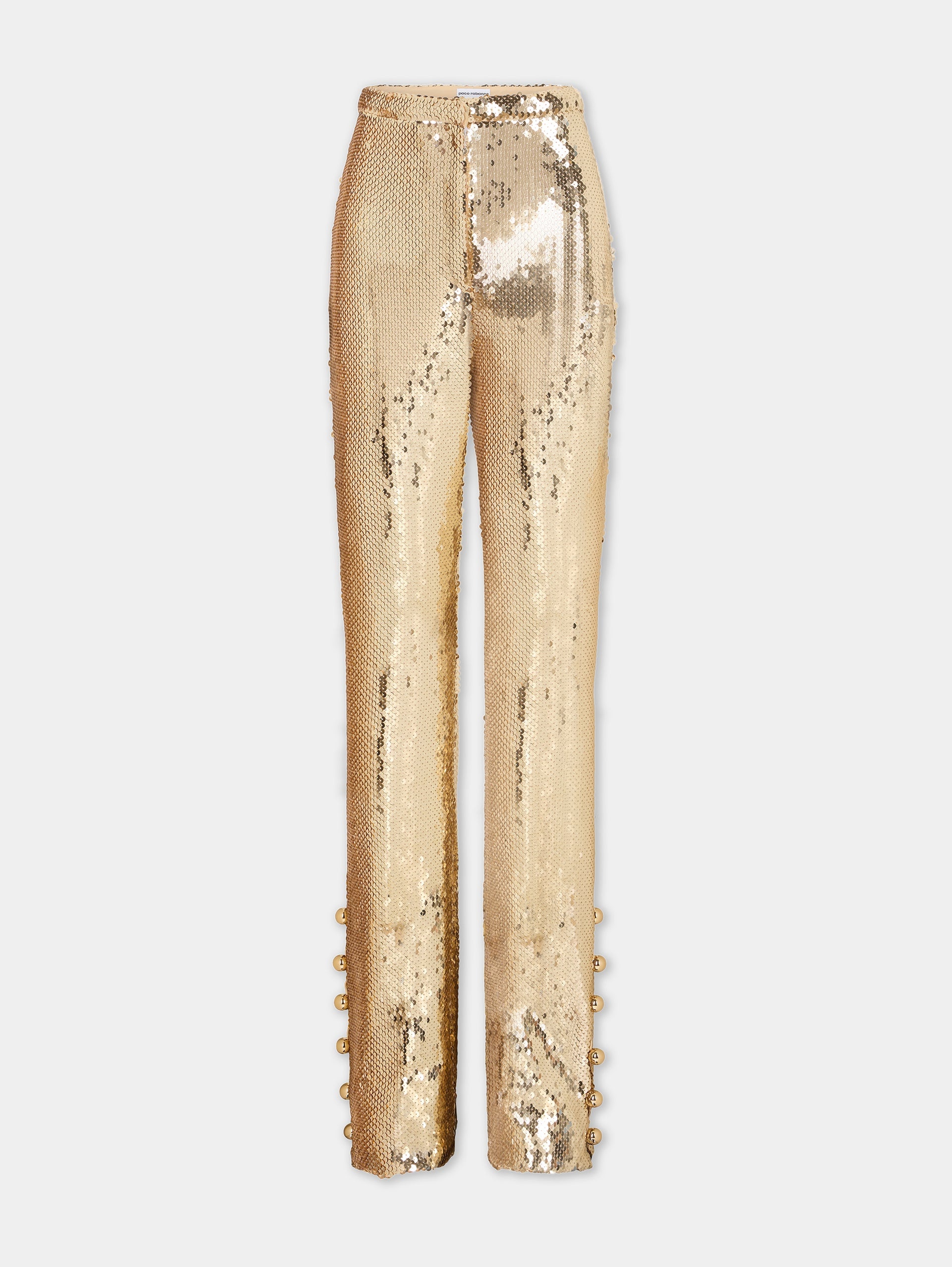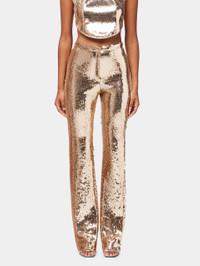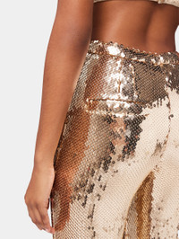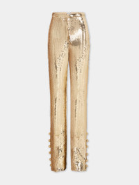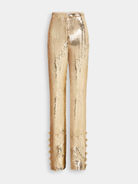 GOLD SEQUINS TROUSERS WITH METALLIC PEARLED DETAIL