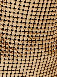 Soft tote bag embellished by its gold color and pixel mesh motif. A striking and iconic signature of Maison Rabanne first seen in the 1960s. DETAILS Carry over the shoulder or by hand - Width 27cm - Length 23cm - Depth 2cm - Composition : 100% Aluminum