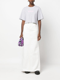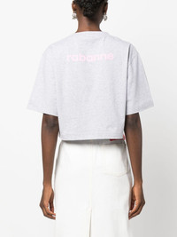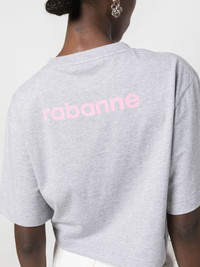 logo-print cropped T-shirt Paco Rabanne showcases a signature approach to design with this cotton T-shirt. Rendered in a cool-grey hue, it is adorned with a logo print at the chest and back and finished with a cropped silhouette. Highlights - Light grey - Organic cotton - Logo print to the front - Logo print to the rear - Crew neck - Short sleeves - Straight hem - Cropped Imported Composition Organic Cotton 100% SIZE & FIT Model measurements Height 5 ft 10 in(1.78 m) Bust/Chest 31.49 in(80 cm) Hips 37 in(94 cm) Waist 23.62 in(60 cm) Measurement SLEEVE LENGTH 9.05 in(23 cm) Shoulder Width 16.92 in(43 cm) LENGTH 16.92 in(43 cm) BUST 34.64 in(88 cm) FittingInformation Designed to be unstructured, offering a loose fit throughout Made with a midweight knit, this piece offers some stretch This piece fits true to size – take your usual size Washing instructions Machine Wash