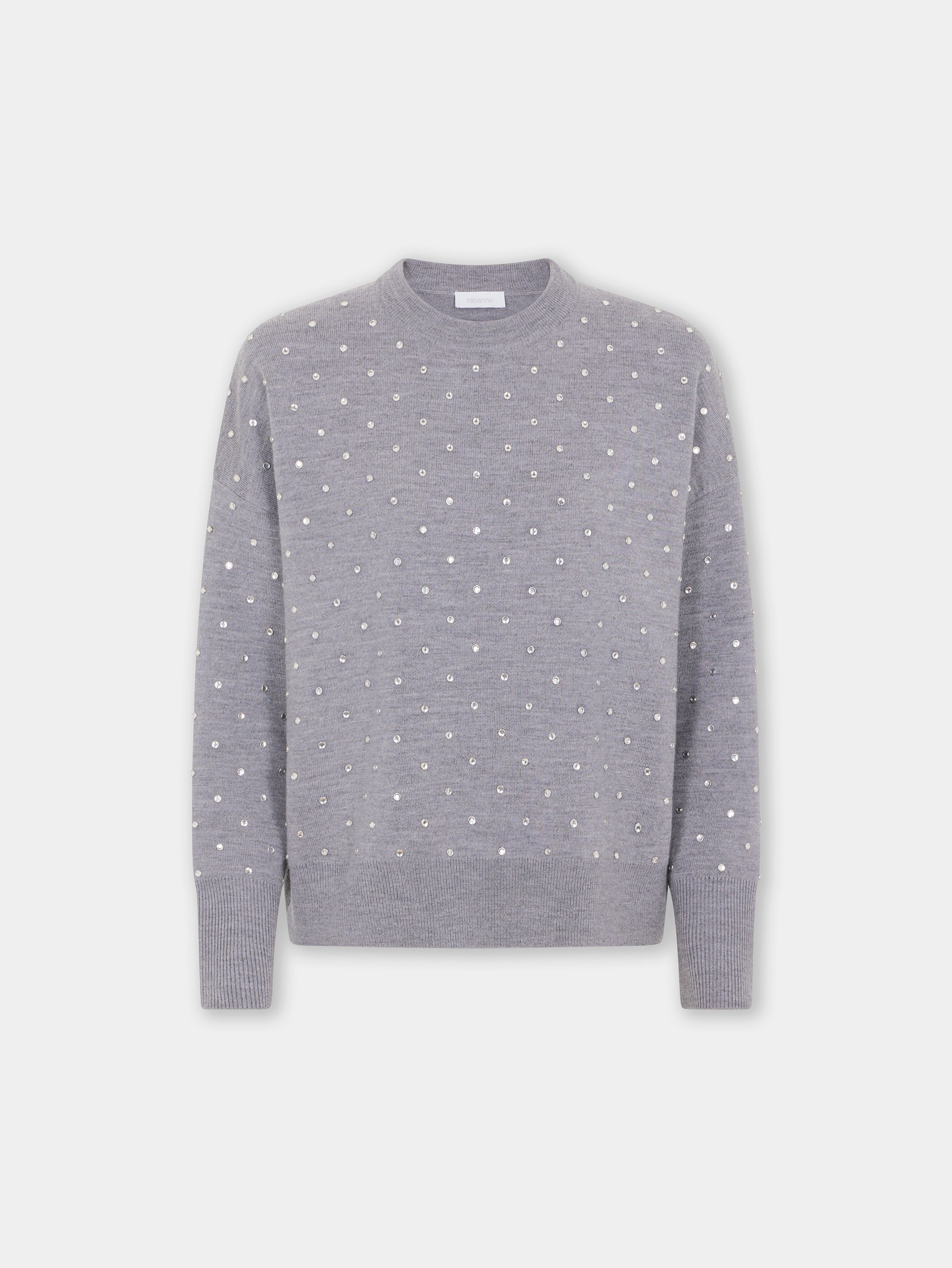 GREY CRYSTAL-EMBELLISHED SWEATER IN WOOL