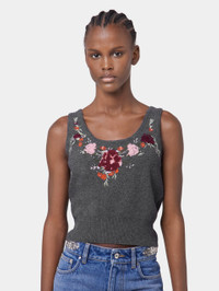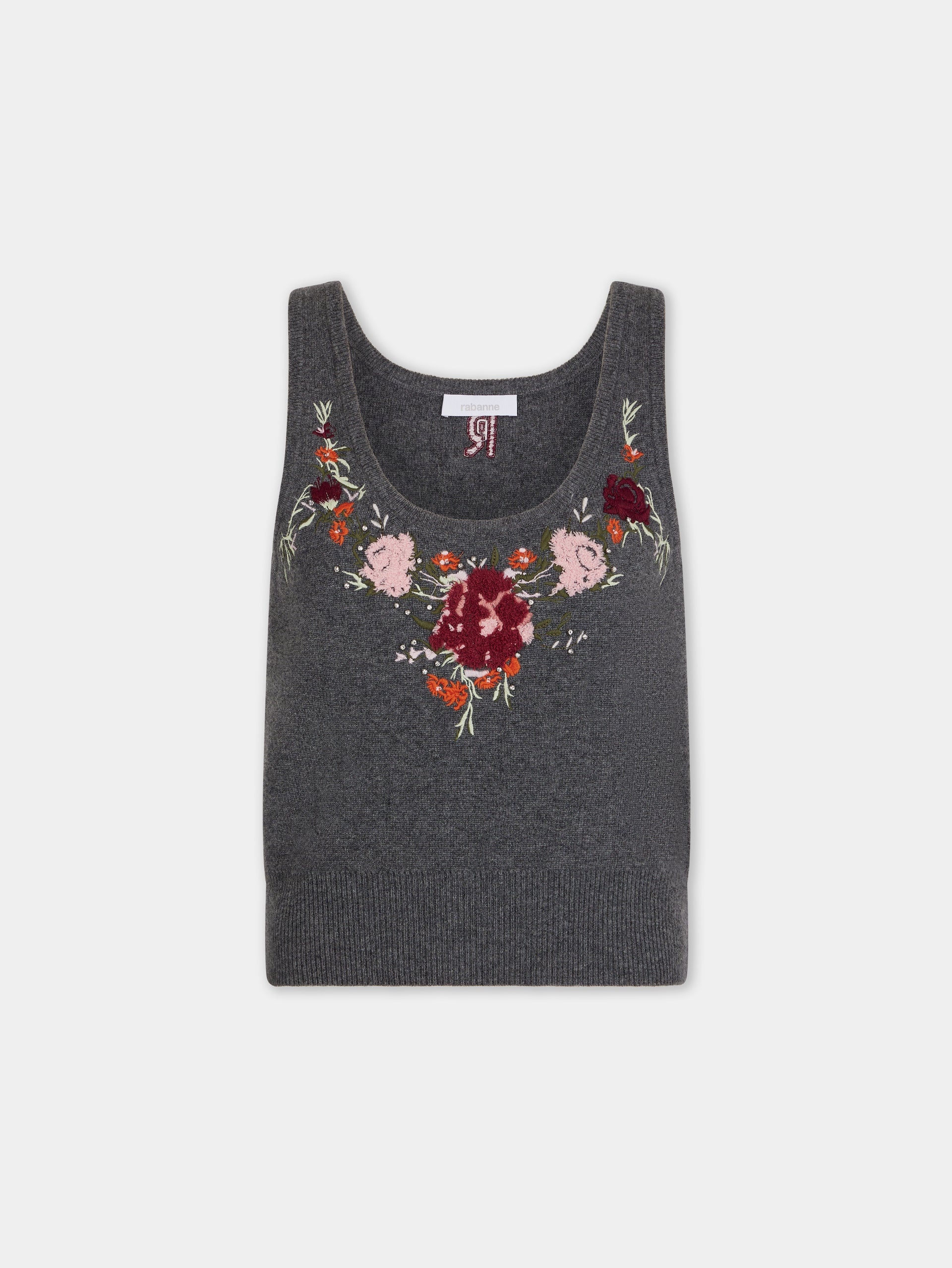 - Color : Deep Grey - Crew neck - Long sleeves - Floral embroidery and coloured hot fix details on the front of the cardigan. Signature embroidery detail on the back of the cardigan. DETAILS - Composition: 90% Wool, 10% Cashmere - Made in China - Model's height: 180 cm / 5ft 11in - Model wears a size FR 36 / UK 8 / US 4 - This style is true-to-size - We recommend your usual size.