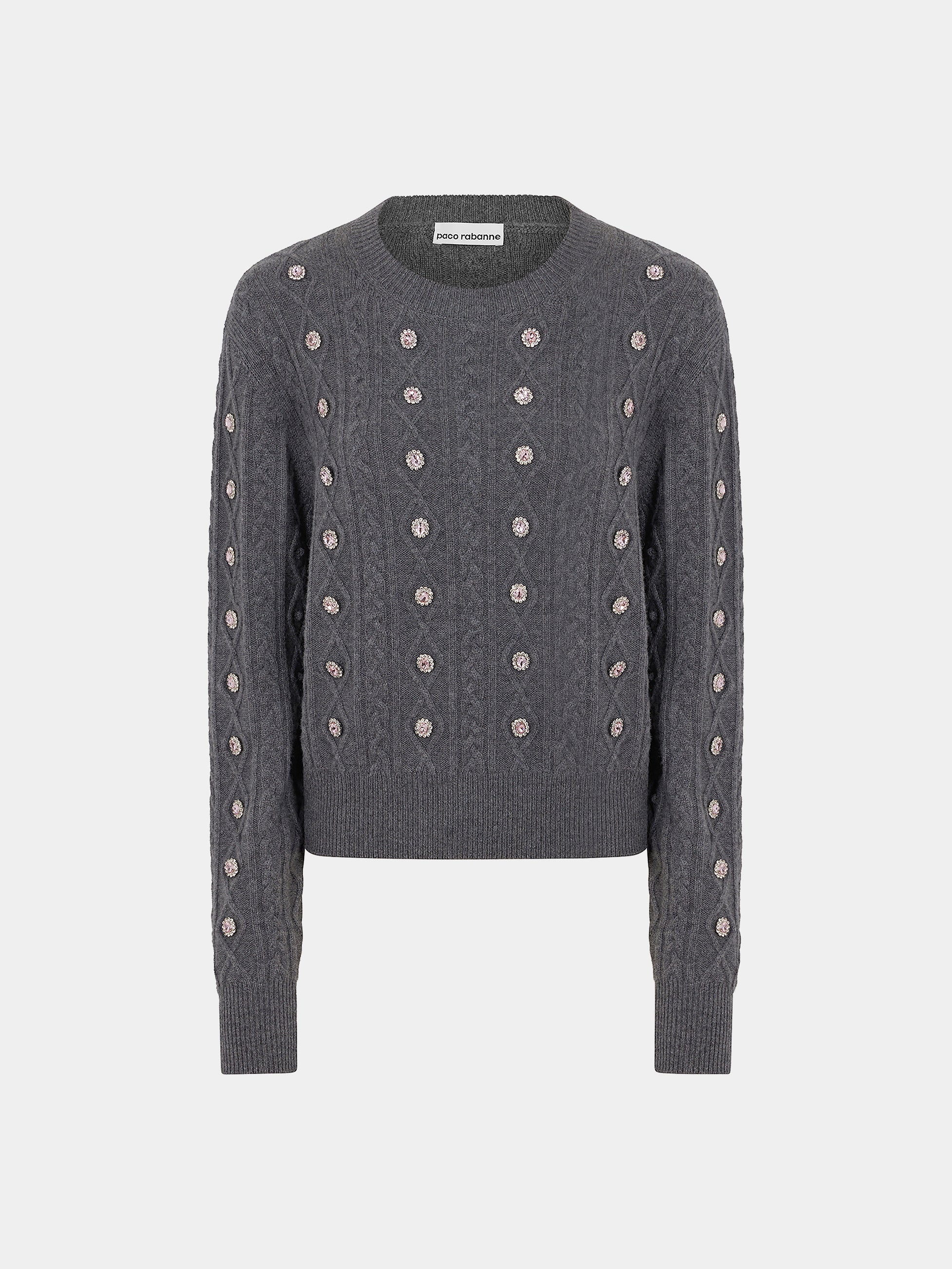 Grey long-sleeved jumper with rhinestone details. It is made from a combination of cashmere and wool. Comfortable and sophisticated cut. DETAILS Composition : 10% CASHMERE, 90% WOOL