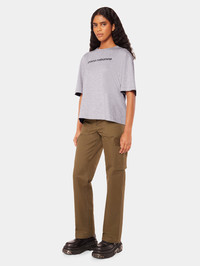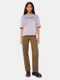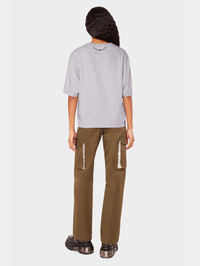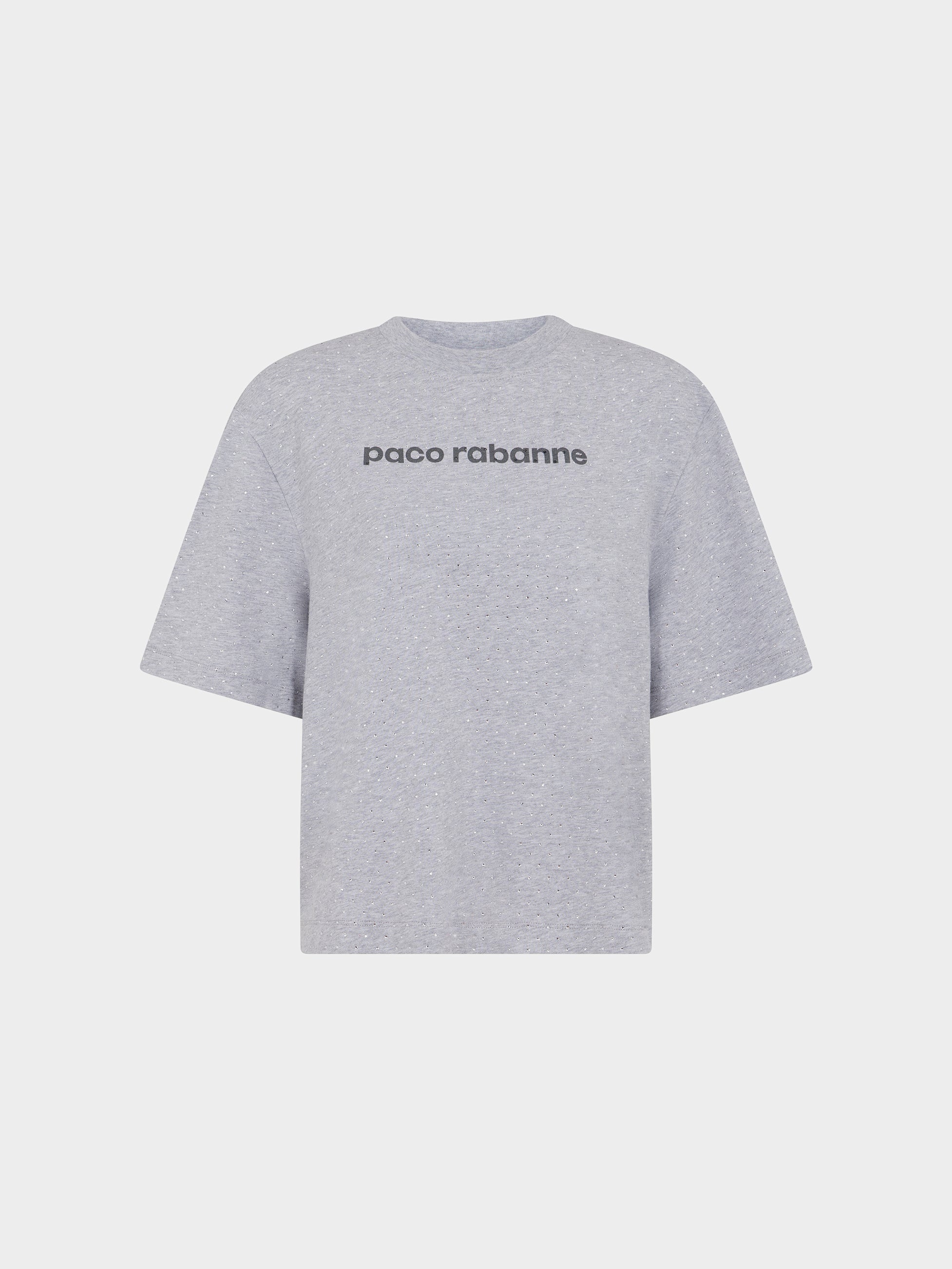 Oversized grey short-sleeved T-shirt with the Paco Rabanne logo. An everyday wardrobe essential for every day looks. DETAILS - Model's height : 179 cm / 5ft 10,5in. - Model wears a size FR 36 / UK 8 / US 4