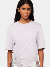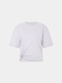 This grey top is a variation of the jersey crop top with piercing ring but with a new design that places the silver ring on the side of the top, making it more discreet and elegant. Wear it with the ripped denim jeans or any chic Rabanne pants. - Color : grey - Designed with a piercing - Short-sleeved top - Enhanced by a white Rabanne logo - Style : Casual - Composition: 100% Cotton - Made in Portugal Size & Fit - Model's height: 180 cm / 5ft 11in - Model wears a size FR 36 / UK 8 / US 4 - This style is true-to-size - We recommend your usual size.