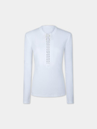 - Color : White - Henley collar - Long sleeves - Lacing detail DETAILS - Composition : 97% Cotton, 3% Elastane - Made in Italy - This style is true-to-size - We recommend your usual size