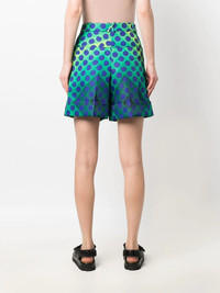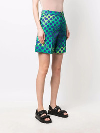 high-waisted graphic-print shorts green/blue cotton all-over graphic print spot print pleat detailing belt loops concealed front fastening slip pockets to the sides straight leg turn-up cuffs Imported Composition Outer: Polyester 80%, Acrylic 10%, Wool 10% Lining: Cotton 100% SIZE & FIT Model measurements Height 5 ft 10 in(1.78 m) Bust/Chest 31.49 in(80 cm) Hips 36.22 in(92 cm) Waist 25.59 in(65 cm)
