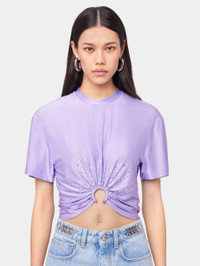 - Color: Lavender - Crew neck - Short sleeves - Signature piercing and hotfix details on the tee-shirt DETAILS - Composition: 90% Viscose, 10% Elastane - Made in Portugal - Model's height: 180 cm / 5ft 11in - Model wears a size FR 36 / UK 8 / US 4 - This style is true-to-size - We recommend your usual size.