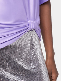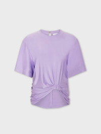 - Color : Lavender - Crew neck - Short sleeves - Bow detail at the front of the tee-shirt forming a drape DETAILS - Composition : 90% Viscose, 10% Elastane - Made in Madagascar - Model's height: 180 cm / 5ft 11in - Model wears a size FR 36 / UK 8 / US 4 - This style is true-to-size - We recommend your usual size.