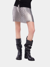 - Color: Silver - Mini length - Details of silver hot fix embroideries on bottom of the garment DETAILS - Composition: 100% Aluminium - Made in Madagascar - This style is true-to-size - We recommend your usual size.