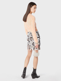Assembled with silver sparkle discs and metallic rings, that reflect the light, this fitted asymmetric mini skirt is an iconic piece from the Rabanne sparkle discs collection showcasing the Maison's savoir-faire. - Silver buttons DETAILS - Washing instructions : Professional cleaning - Composition : 60% Plastic, 40% Brass