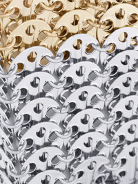 - Colour : Silver and gold - Size : Nano line - 282 silver and gold discs bonded by metal rings - Gold metal chain with Rabanne logo - Assembled by hand - Can be carried by hand or over the shoulder DETAILS - Composition : 100% Brass - Width 16cm - Length 11.5cm - Depth 2.5cm - Strap drop length 55cm - Weight 0,4kg