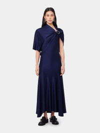 NAVY ASYMMETRICAL LONG DRESS IN JERSEY