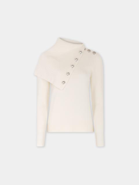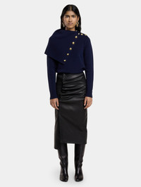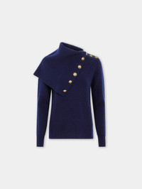 Sweater in wool featuring an oversize turtleneck collar with gold buttons. - Color: Navy - Oversize turtleneck with buttoning - Long sleeves - Signature gold buttons - Composition: 100% Wool - Made in Romania Size & Fit - Model's height: 176 cm / 5ft 9,5in - Model wears a size FR S / UK 8 / US 4 - This style is true-to-size - We recommend your usual size