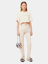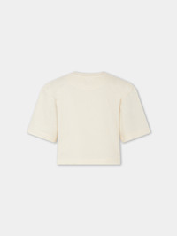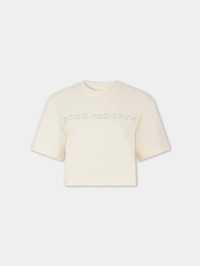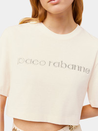 Crafted in cotton, this crop top tee-shirt features short sleeves with the Paco Rabanne logo. DETAILS - 100% Cotton - Nude - Model's height: 178 cm / 5ft 10in. - Model wears a size FR 36 / UK 8 / US 4
