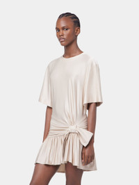 - Color : Nude - Crew neck - Short sleeves - Short-length - Belt with an integrated bow at the front of the dress - Back zip closure on the dress DETAILS - Composition : 90% Visocse, 10% Elastane - Made in Madagascar - Model's height: 180 cm / 5ft 11in - Model wears a size FR 36 / UK 8 / US 4 - This style is true-to-size - We recommend your usual size.