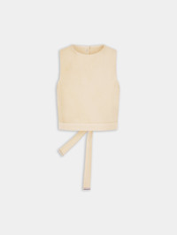 - Color : Ochre - Crew neck - Sleeveless - Back bow detail - 8 snap silver buttons closure DETAILS - Composition : 83% Viscose, 17% Polyamide - Made in Tunisia - Model's height: 180 cm / 5ft 11in - Model wears a size FR 36 / UK 8 / US 4 - This style is true-to-size - We recommend your usual size.