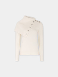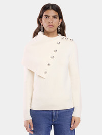 Sweater in wool featuring an oversize turtleneck collar with gold buttons. - Color: Off White - Oversize turtleneck with buttoning - Long sleeves - Signature gold buttons - 100% Wool - Made in Romania Size & Fit - Model's height: 177 cm / 5ft 9,5in - Model wears a size FR 36 / UK 8 / US 4 - This style is true-to-size - We recommend your usual size