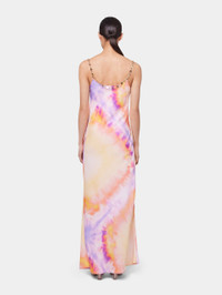 ORANGE TIE-DYE LONG DRESS IN PRINTED SATIN