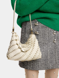 - Color: Cream/Gold - Handle in leather, attached to the bag with a metal link. - Gold metalwork. DETAILS - Composition: 100% Calfskin - Made in Hungary