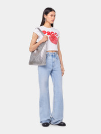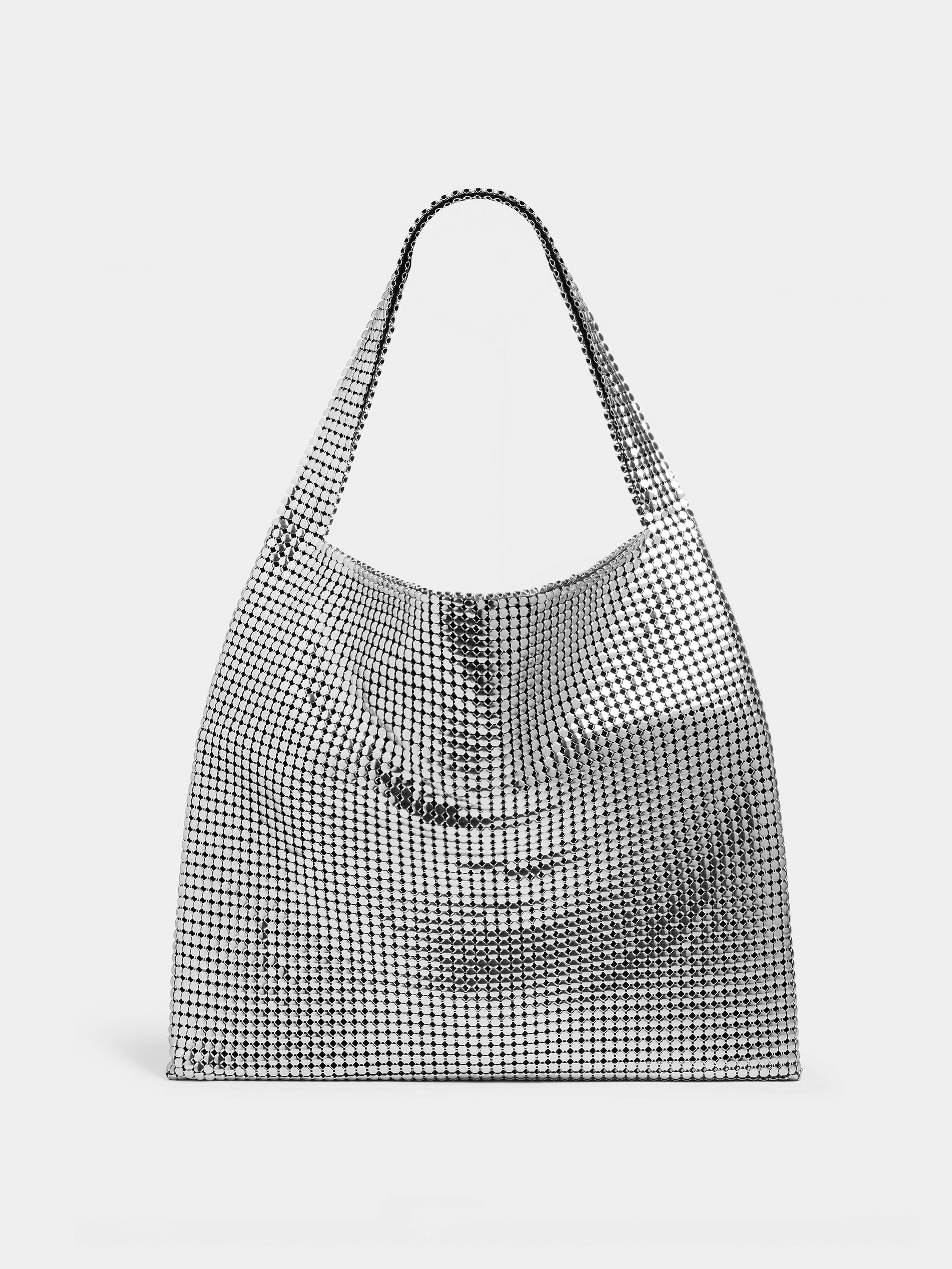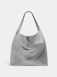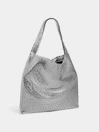 This large, supple tote in silver XL mesh has a jacquard lining. A striking and iconic signature of Maison Rabanne first seen in the 1960s. DETAILS Composition : 100% Aluminum Carry over the shoulder or by hand