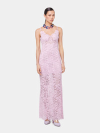 - Color : Powder pink - Stretch fabric - V neckline - Sleeveless - Ankle-length - Scalloped edges DETAILS - Composition : 90% Polyamide, 10% Elastane - Made in Tunisia - Model's height: 180 cm / 5ft 11in - Model wears a size FR 36 / UK 8 / US 4 - This style is true-to-size - We recommend your usual size.