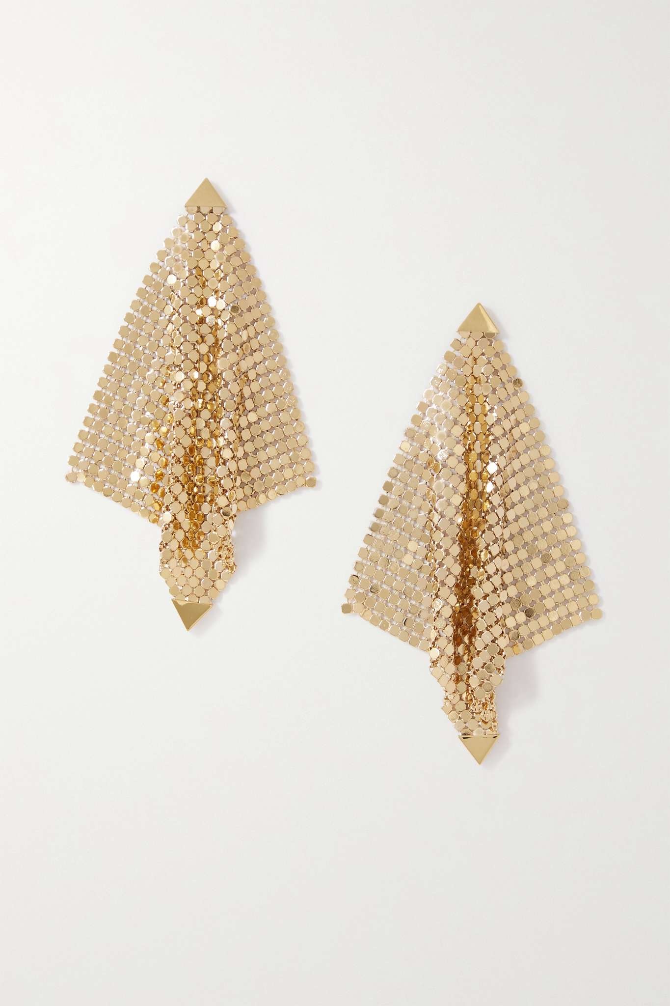 EDITORS'NOTES Paco Rabanne's 'Pixel Flow' earrings will add an instant hit of glamour to your outfit. Crafted from the label's signature gold-tone chainmail, they have a lightweight feel and a fluid sense of movement. SIZE & FIT This item’s measurements are: - Length: 9cm / 3.5in - Width: 9cm / 3.5in - Drop: 9cm / 3.5in DETAILS & CARE - Butterfly fastening for pierced ears