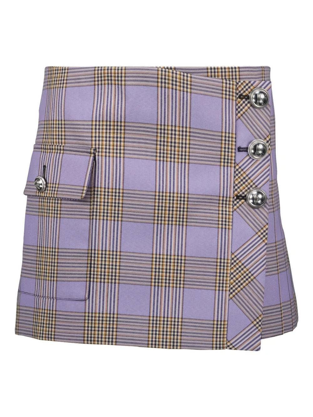 checked pleated skirt Highlights - Purple - Side button fastening - Side flap pocket - Wrap design - Thigh-high Imported Composition Viscose 100%, Cotton 100%