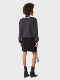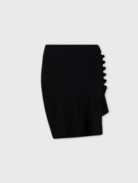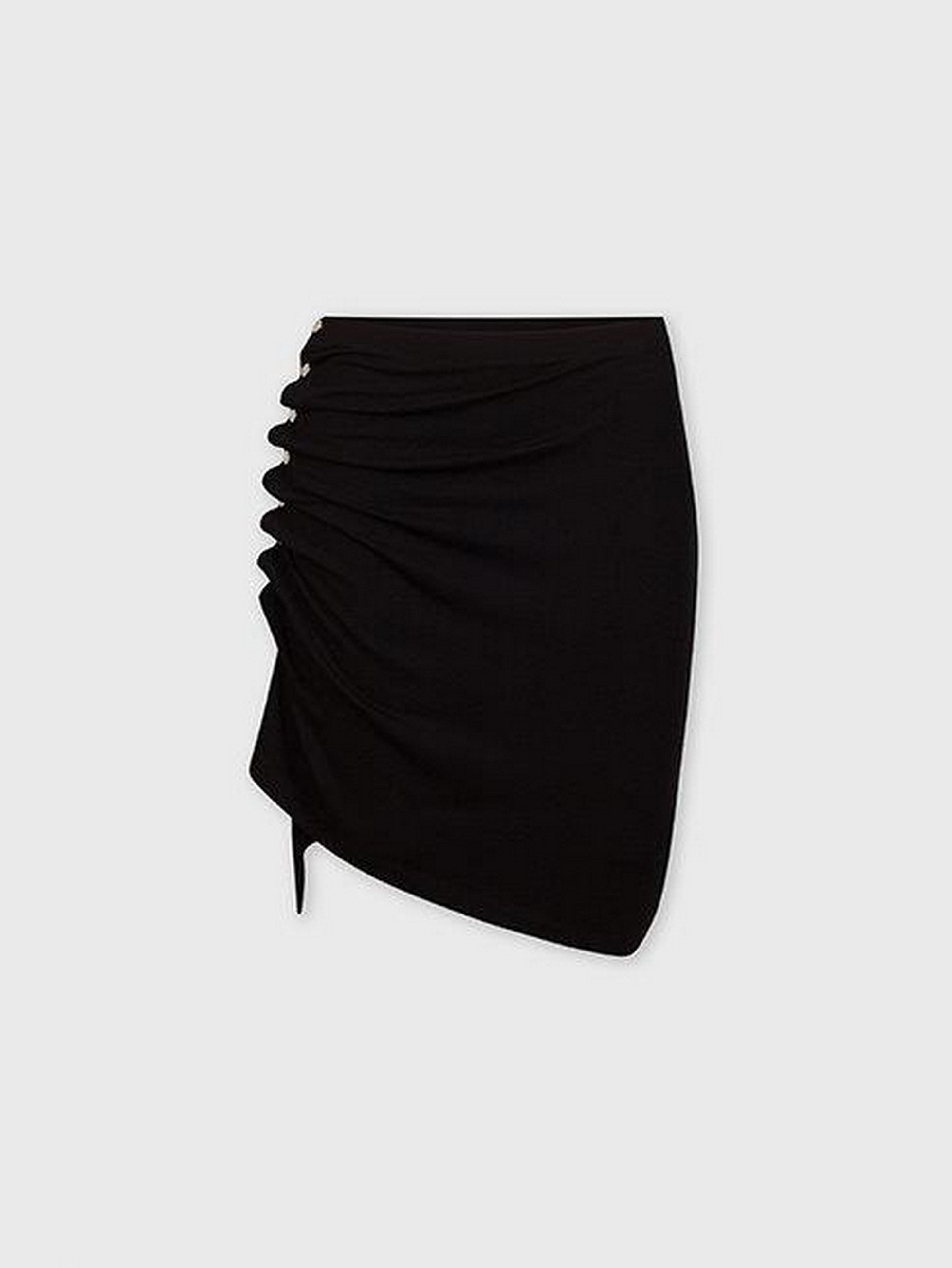 The pleated mini skirt is crafted in black stretch jersey. It features a fitted silhouette and silver snaps that create a pleated detail that brings structure to the skirt. DETAILS - Main material: 90% viscose, 10% elastane - Care: dry clean