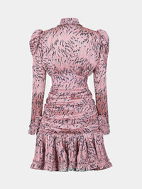 Pink long-sleeved dress with metallic sparkle motifs, plays with volume, the draped design at the waist gives structure to the piece. DETAILS 100% POLYESTER