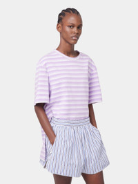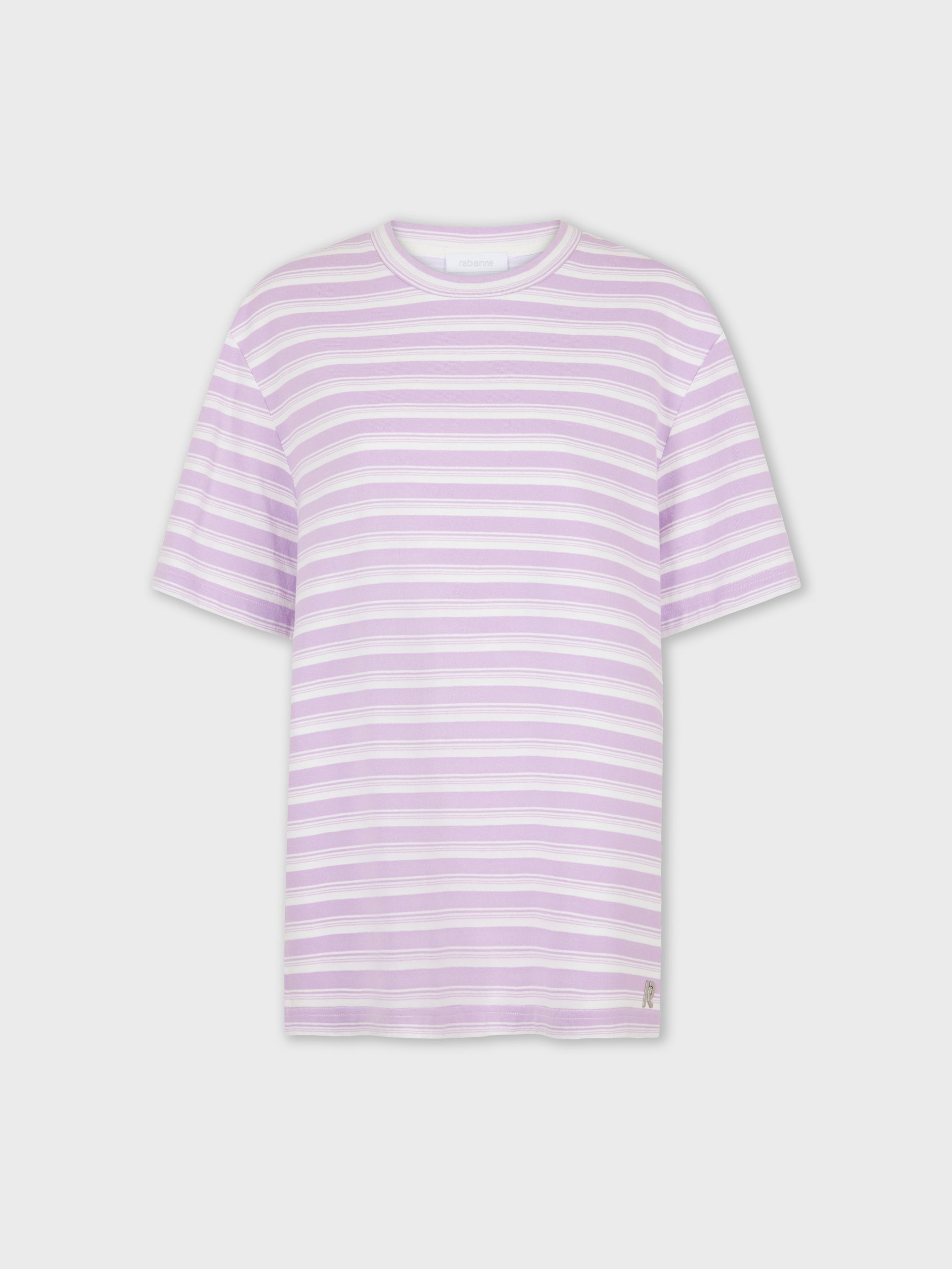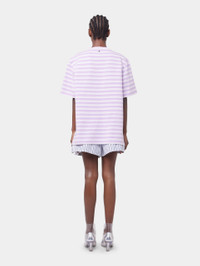 - Colors : White and lilac striped - Crew neck - Short sleeves - Hotfix logo at the front and eight detail at the back of the tee-shirt DETAILS - Composition : 100% Cotton - Made in Portugal - Model's height: 180 cm / 5ft 11in - Model wears a size FR 36 / UK 8 / US 4 - This style is true-to-size - We recommend your usual size.