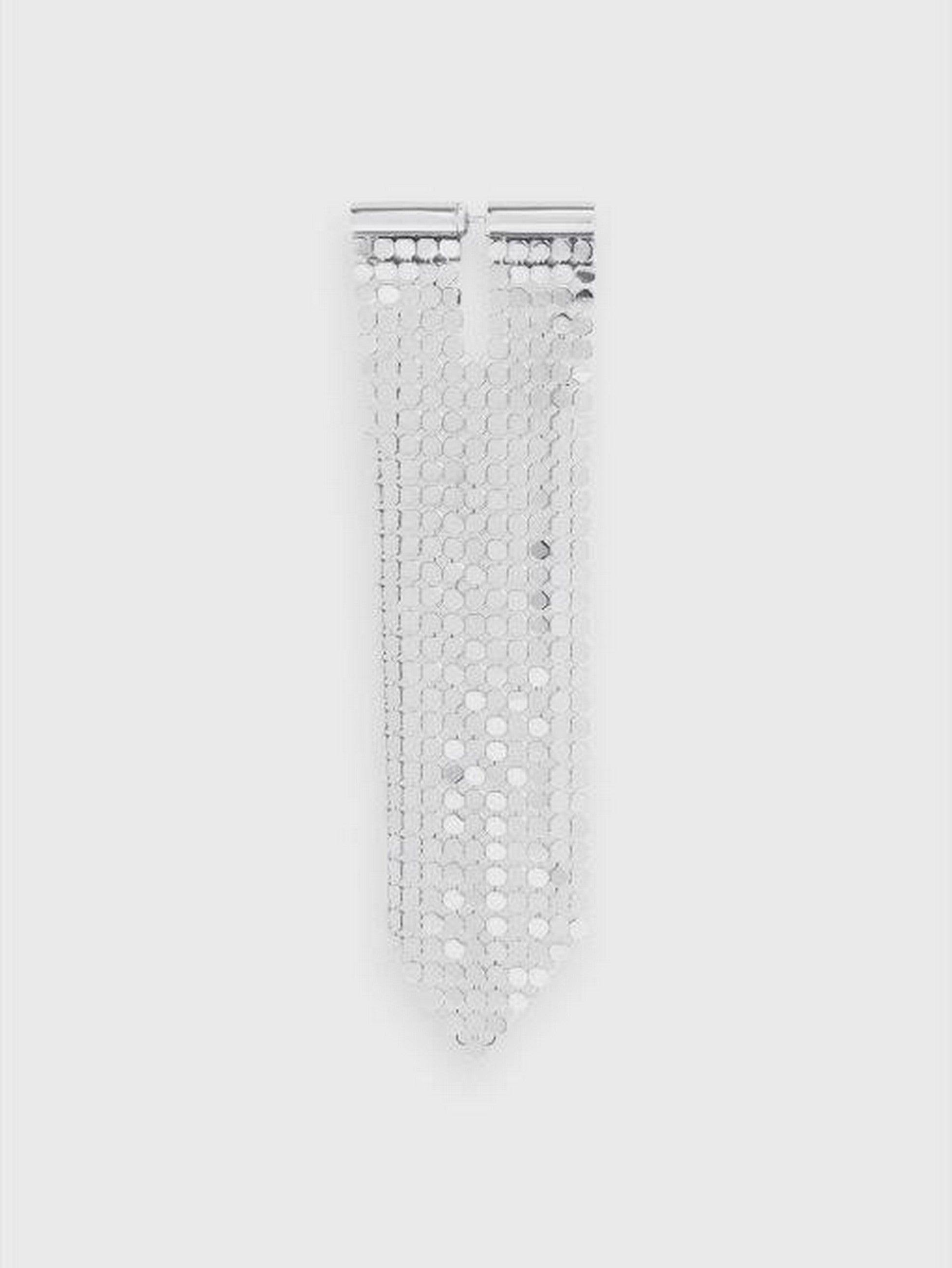 This long square earring is made of silver mesh, a fluid and lightweight material synonymous with House Rabanne. Light and flexible, it sways gracefully as you move. As an example of the brand's attention to detail, this elegant drop earring bears the Paco Rabanne logo inside the fastening. Main material: 100% aluminium
