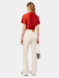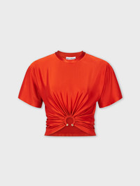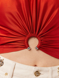RED CROP TOP IN JERSEY WITH PIERCING RING