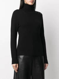 roll-neck merino wool jumper black merino wool knitted construction roll neck long sleeves Imported Composition Merino 100%, Virgin Wool 100% SIZE & FIT Model measurements Height 5 ft 10 in(1.78 m) Bust/Chest 33.07 in(84 cm) Hips 35.82 in(91 cm) Waist 25.98 in(66 cm) FittingInformation This piece fits true to size. We recommend you get your regular size Cut for a slim fit Made with a mid-weight fabric Washing instructions Dry Clean Only