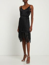 Satin & mesh fringed mini dress