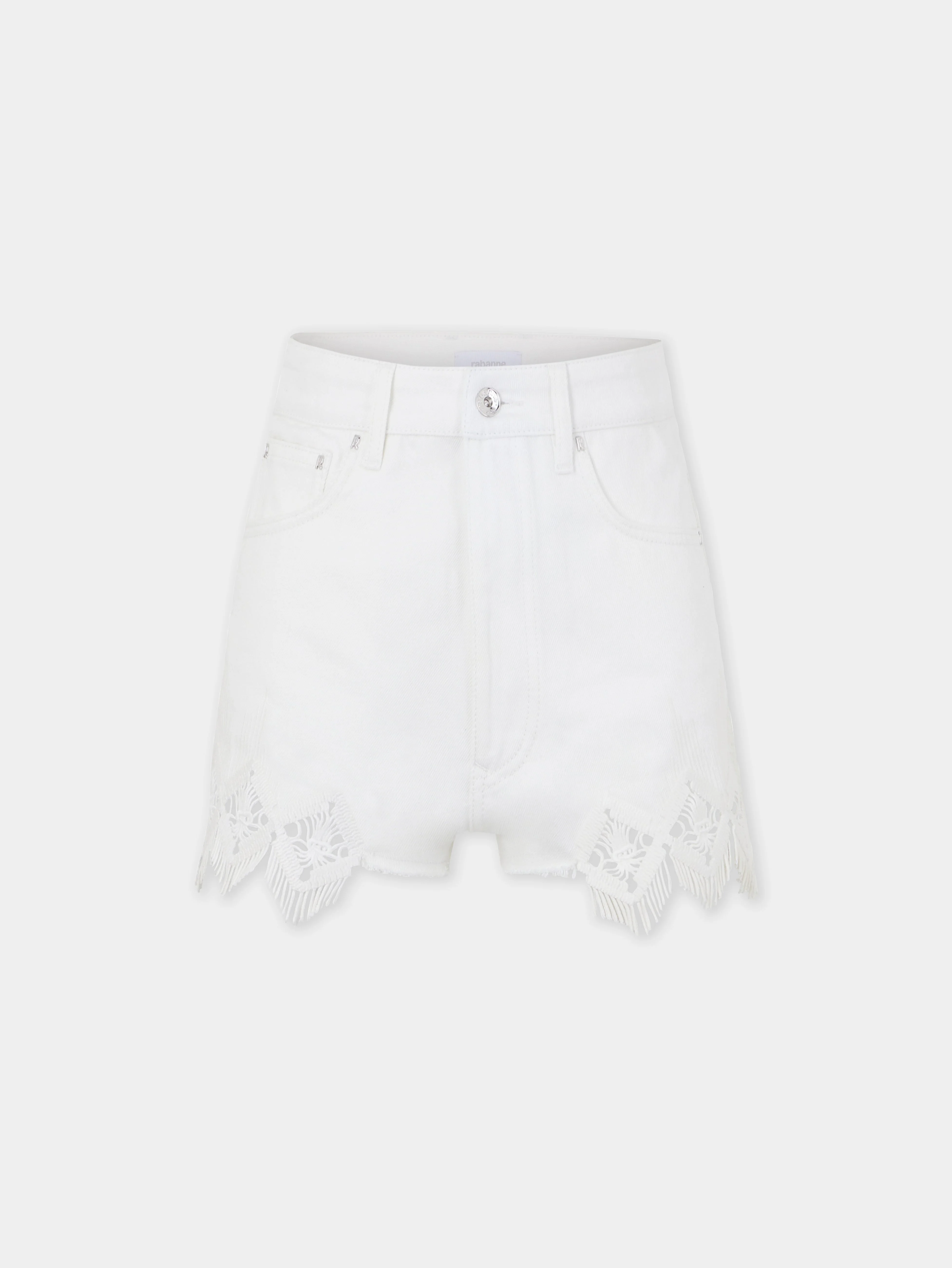 Denim shorts with embroidery details - Color: Off white denim - Geometric embroideries details. - Composition: 100% Cotton - Made in Italy Size & Fit - Model's height: 180 cm / 5ft 11in - Model wears a size FR 36 / UK 8 / US 4 - This style is true-to-size - We recommend your usual size.