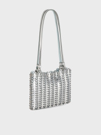 - Color : Silver / Blue - Shoulder wear with a reversible leather double strap - Rabanne engraved magnetic closure DETAILS 23 x 18 x 3 cm - 40% Cowskin, 40% Calfskin, 20% Steel - Made in Madagascar