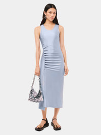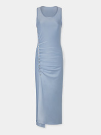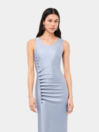 SLEEVELESS FADED BLUE DRAPPÉ PRESSION DRESS
