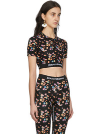 Short sleeve stretch viscose jersey T-shirt in black featuring floral pattern printed in multicolor throughout. Elasticized logo-woven hem. Available exclusively at SSENSE. Supplier color: Black/Multicolor