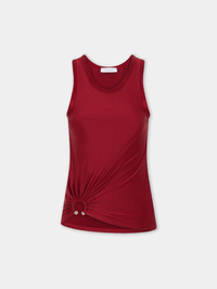Tank top in jersey with piercing detail. - Color: Red - Crew neck - Sleeveless - Silver piercing detail on the right side. - Composition: 90% Viscose, 10% Elastane - Made in Portugal Size & Fit - Model's height: 180 cm / 5ft 11in - Model wears a size FR 36 / UK 8 / US 4 - This style is true-to-size - We recommend your usual size.